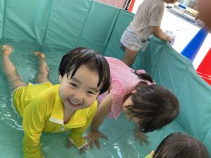 お友だちとの関わりも増えてとても楽しい水遊びとなりました。