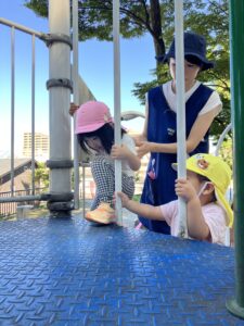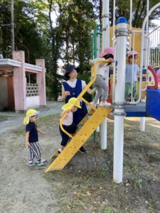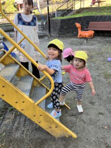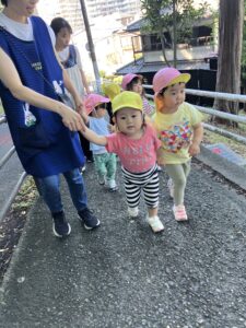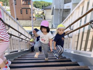 台原公園へ行く少し急な坂道では「よいしょよいしょ!がんばれー!」とかけ声をかけながら頑張ってのぼっていました!