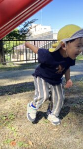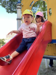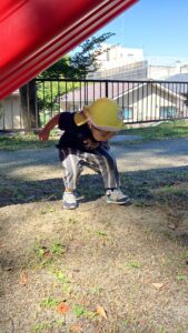 滑り台の下を中腰で何度もくぐるのにはまったお友だちも(笑)