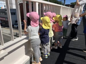 帰りは歩道橋を登っていつもとは違う目線で車やバスを見学