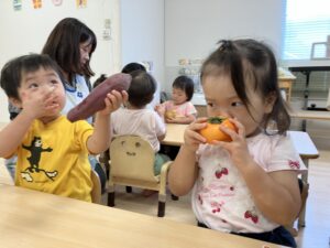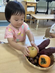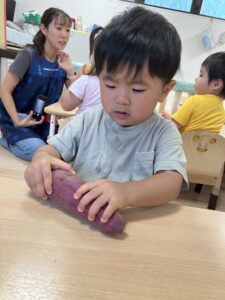 いつものように、さつまいもと柿のにおいを嗅いだぱんだグループさんが「何もにおいしなーい」と教えてくれました!いいことに気がつきました(^▽^)