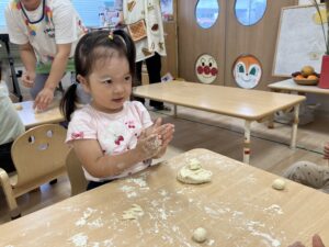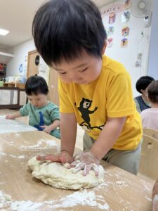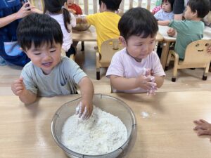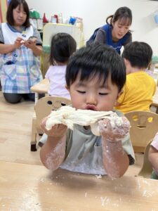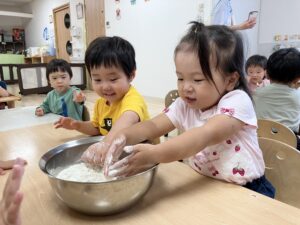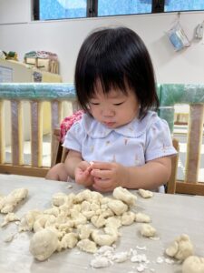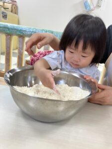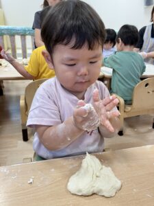 少しお水の入ったねばねばの小麦粉粘土をさわったり☆
