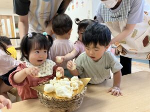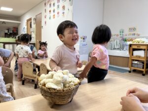 さくらっこでは季節の行事をとても大切にしています。「おつきみはお月様にどうぞってお団子を