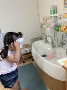 終わった後は自分で鏡を見てお顔を拭いていました(^▽^)