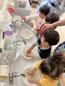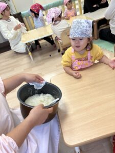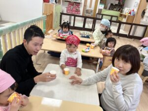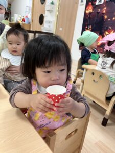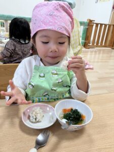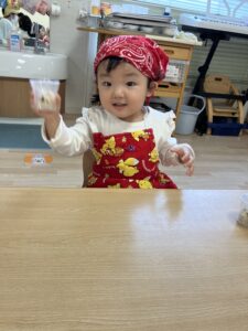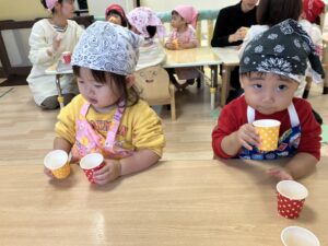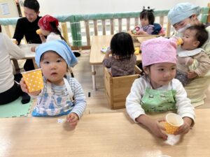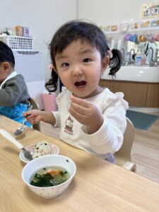 保育中も、美味しい匂いをくんくん・・・楽しみに待つさくらっこさんたちでした。