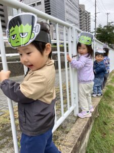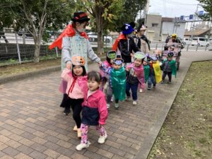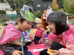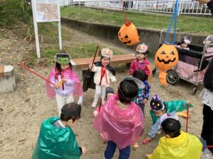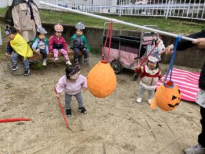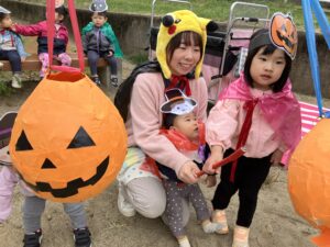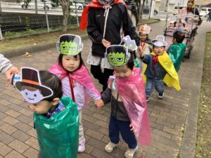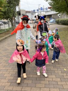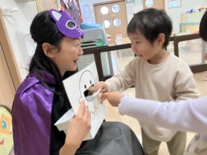 前日は英語教室でハロウィンの英語のお歌や英語を教えてもらいました。2日間ハロウィンをたのしみました♪