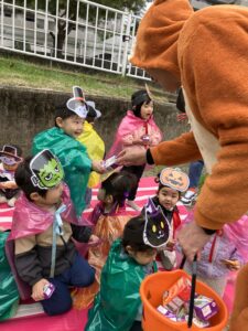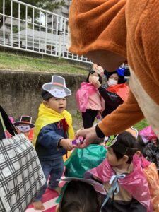 そして、仮装した園長先生の合言葉を伝えてお菓子もゲット!