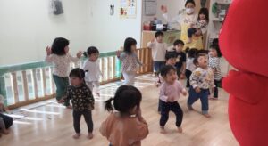 コーすけくんと一緒にこーすけダンスもおどりました!コーすけくんも上手ですが、子ども達も負けていません☆にこにこでダンスをして満足そうな子ども達でした◎