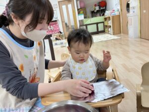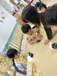 やってみよう!!という気持ちの芽生えを大切に、一緒に取り組みました。上手にできたね☆