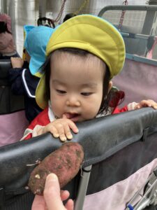 さてつぎは、さくらっこさんたちがとても楽しみにしていた芋掘りです。