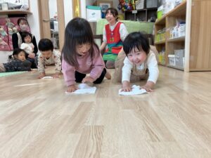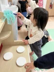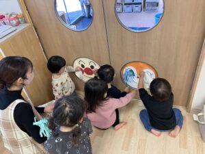 いよいよ大掃除スタート!雑巾とはたきを使い、床に壁、玩具も丁寧に拭き上げ園中をピカピカにしてくれました✨