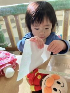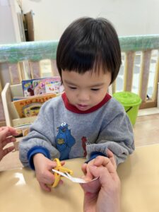 こあらぐるーぷさんも指先を使って折り紙をちぎるのが上手になってきました◎