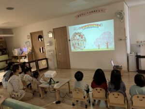 そしてみんなで思い出のスライドショーをみました!みんな自分の写真が出ると「○○ちゃんだー!いぇーい」と立ち上がって喜んでいて、大興奮でした★