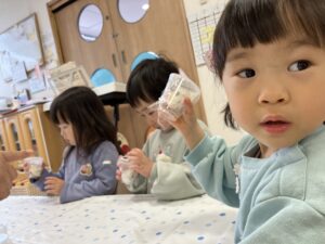 そして今日はパンダグループさんから保育者へおにぎりを作ってプレゼント★作り終わって、保育者に「なにつくってきたの?」と聞かれると「内緒~♡」と言ってサプライズでおきぎりをプレゼントしてくれました!サプライズまでできるようになって素敵なお姉さんになりましたね!