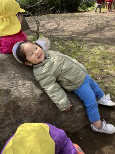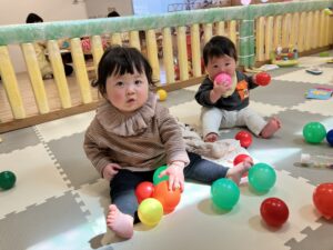 最初の二日間は泣いている姿の多くみられましたが、3日目からは泣いているよりも好きな物をみつけて遊ぶ姿の方が多くみられるようになりました◎