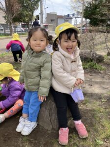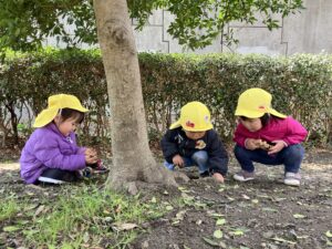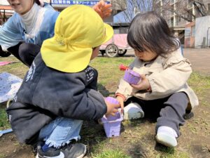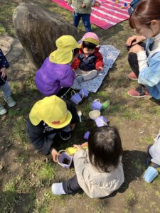春になりお散歩ではあり探しと砂遊びでご飯屋さんごっこが大ブーム!