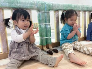 「おててとおててでハイタッチ♪」